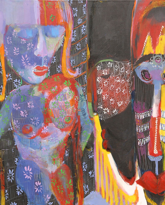 Acryl, Öl, Holzbeize auf Leinwand