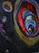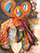Acryl, Ölkreide, Beize, Papier, Knopf auf Leinwand