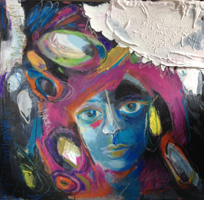 Acryl, Ölkreide, Papier auf Leinwand